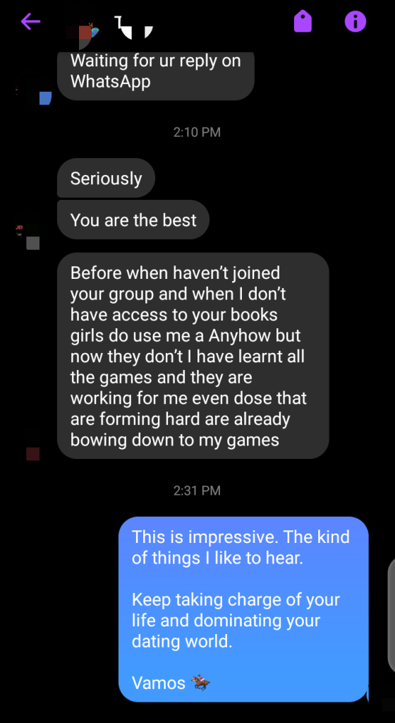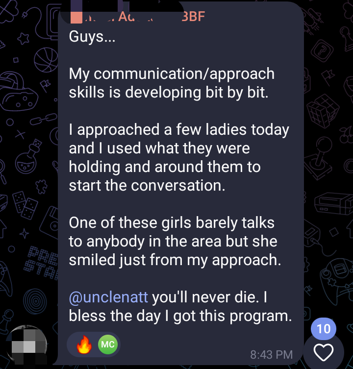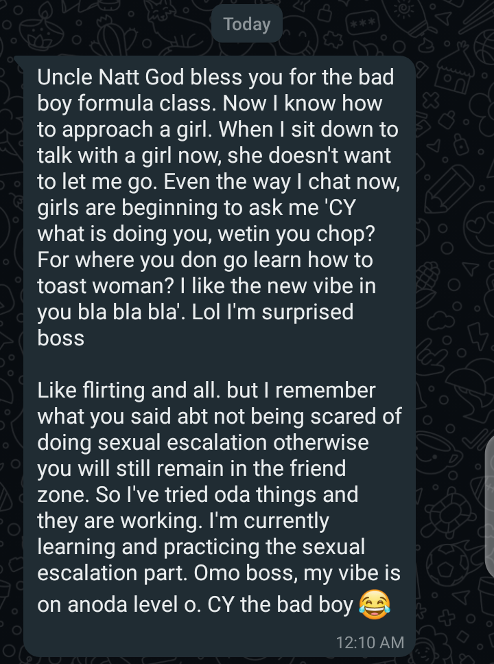 I’ve shown them how to stop living like background characters in their own stories. How to own their presence. How to lead in life and in love — and how to stop tip-toeing around the women they desire.