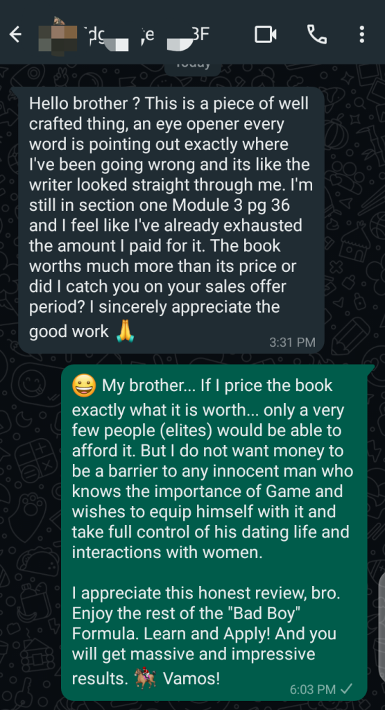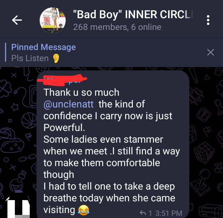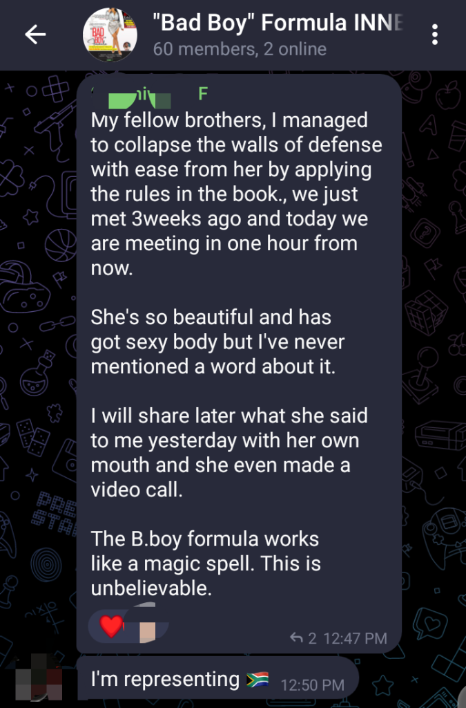 As at the time I am updating this webpage in October, 2025… we have over 465 innocent men in the community, using the “Bad Boy” Formula Tekniks to dominate their dating game + their interactions and relationships with the women they desire.